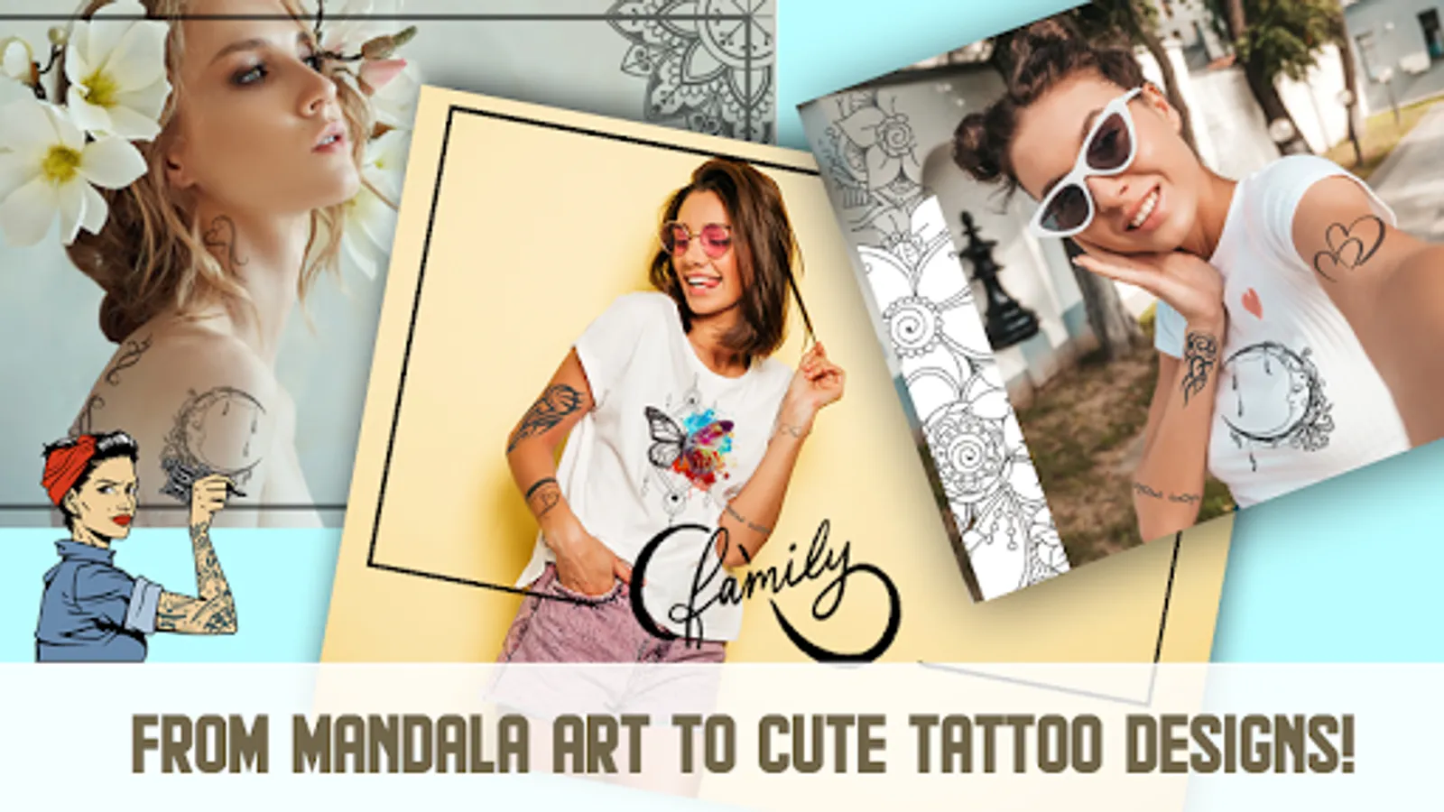 đˇ Reference your favorite show, cover your body with beautiful mandala art or write a quote. Options are countless! But how do you know which are the best places to get a tattoo or which one is the right choice for you? Answers to those questions are hidden in this âtattoo photo appâ! It allows you to use picture filters and write âquotes on photosâ. That way, you can figure out which combination of fonts and shapes fits you the best. âTattoo your photoâ and see how it looks virtually before you go through with it. You can make them expressive, symbolic and meaningful. But maybe the most important thing is to make them truly yours. So âadd tattoo to your photoâ in a shape of âstickers for picturesâ and before you know it, you'll be getting a tattoo for real! đˇ