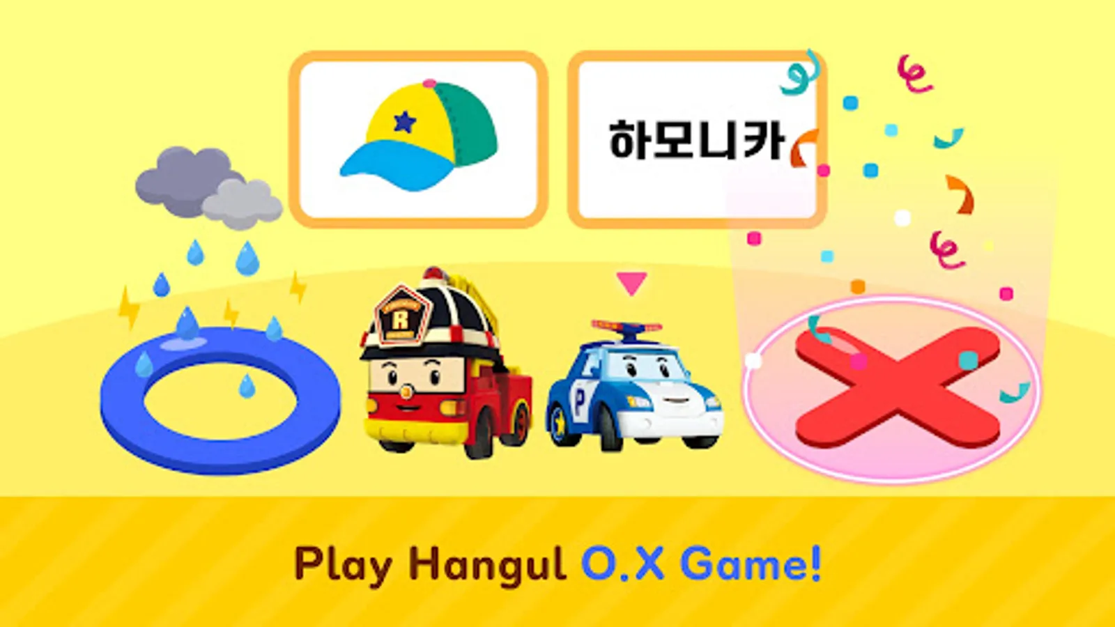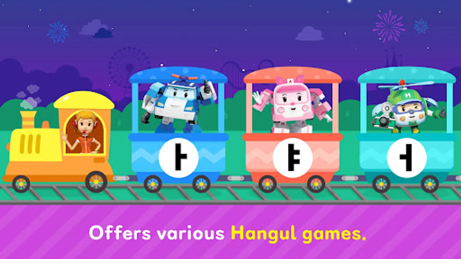 • Offers easy and fun ways to learn Hangul with Robocar Poli and friends, Amber, Roy, and Helly!