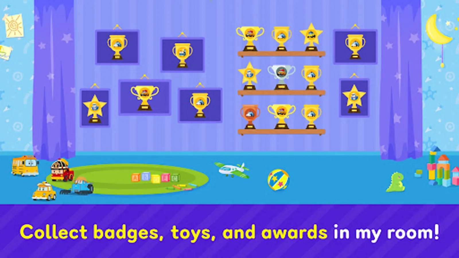 • Children can earn Robocar Poli trophies, toys, badges by winning the games.