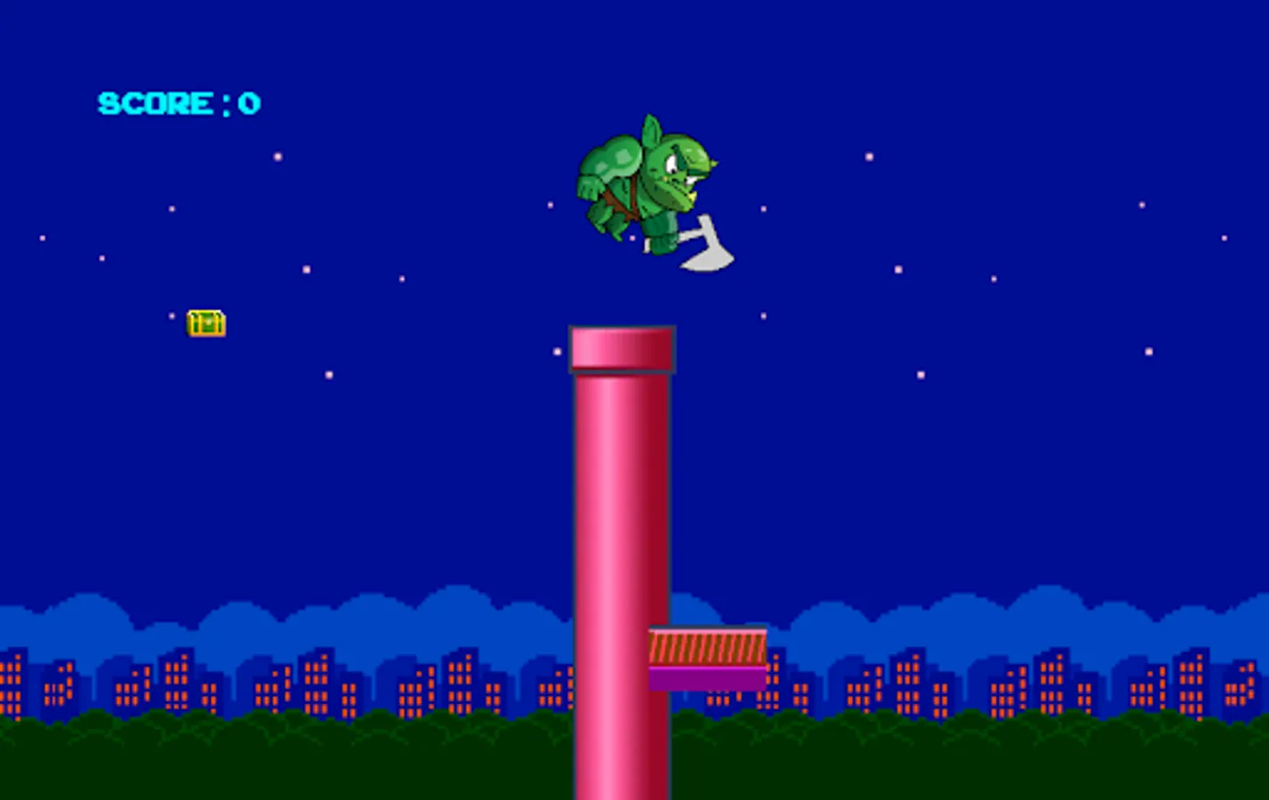 Our game, which consists of 5 levels, is trying to overcome the obstacles with the Orc character. Sometimes you have to glide between pipes and sometimes other obstacles and collect enough scores.