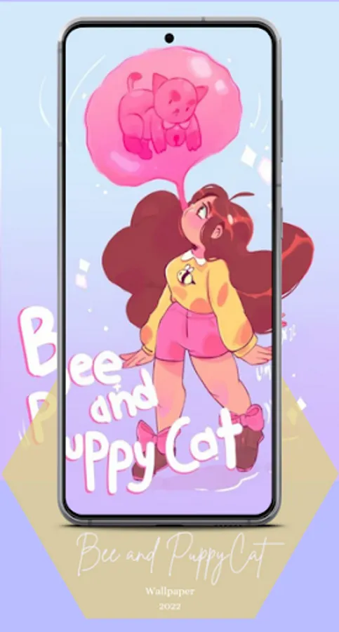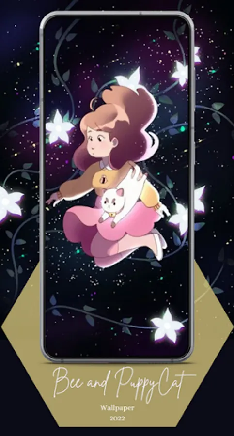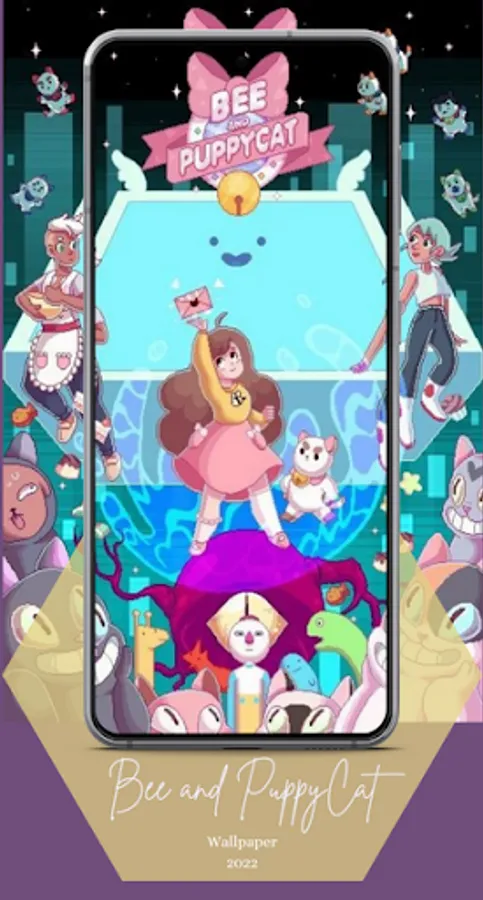 Hi, welcome to the Bee and PuppyCat wallpapers app. Bee is a cheerful and eccentric young woman in her early twenties who is usually fired from menial, low-paying jobs. On his way home from a failed job opportunity, PuppyCat, a strange and mysterious creature, falls from the sky. Bee discovers that he has a knack for the job and pays well enough for him to ignore the danger.