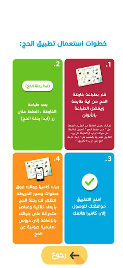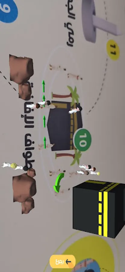 Move your mobile camera over the steps and images of the map to show you the Hajj journey in three dimensions and animated elements on your mobile, in addition to audio lessons about Hajj.