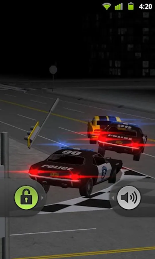 This live wallpaper will amaze and entertain you and your friends! Watch as 2 cop cars and 1 run away vehicle speed though this night city setting.