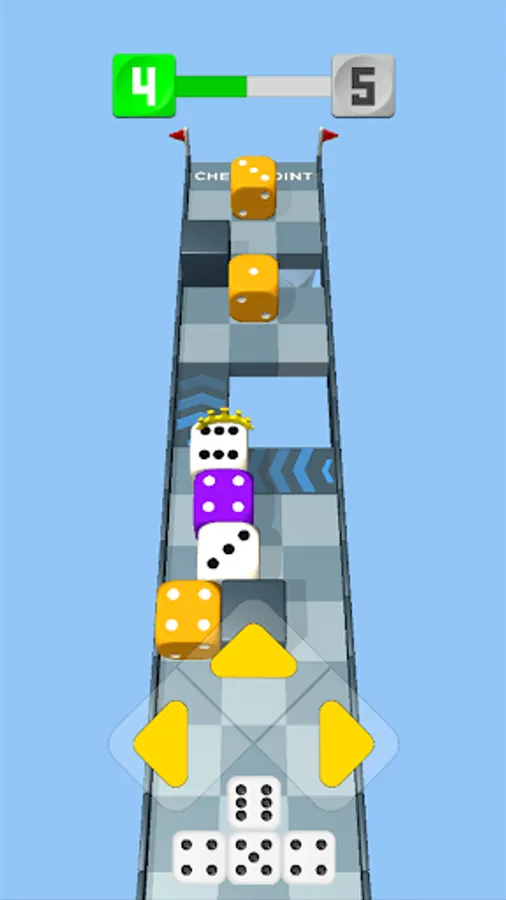 Move like a snake as you add dice. Create a joker by merging with dice of the same face. Avoid obstacles, roll dice in the final and pass the goal score.
