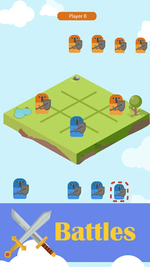 There is a standard field for playing Tic Tac Toe, the main feature is that you can overlap the enemy soldiers with your larger soldiers. You can play against AI, or together on the same phone.