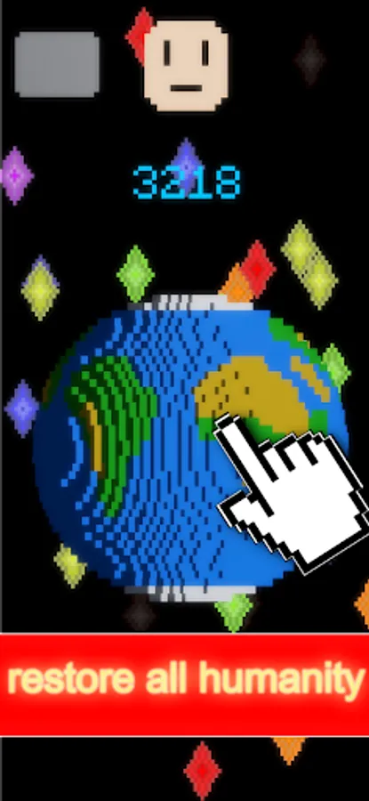 Clicker game. Click on the planet to restore humanity. Restore humanity to 7,000,000,000.