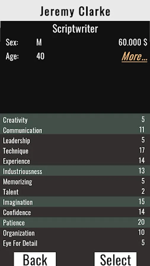 It is crucial to cast the right people for each role. Every character comes with a unique set of skills and some may possess attributes that aren't visible on the skill list. For instance, individuals with the "Creative Gem" attribute will excel at writing scripts and perform exceptionally well with unconventional genre-topic matches.