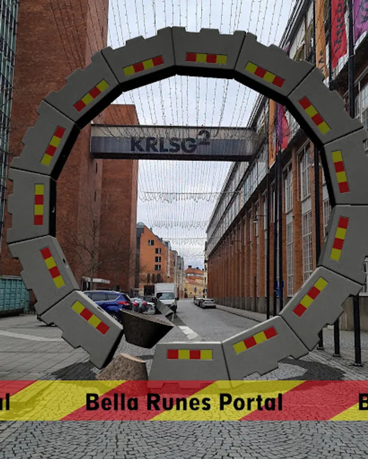 The app “Bella Runes Portal” is a site-specific public art work made by artist Bella Rune, produced by Västerås Art museum for Västerås municipality. The app is built and programmed by Jonas Lythell. The app is free to download and use and no purchase can be made in, or through, the app. The art consists of monumental AR sculptures made from digitalized materials that make up the city, like bricks, waste baskets and sewage grids.