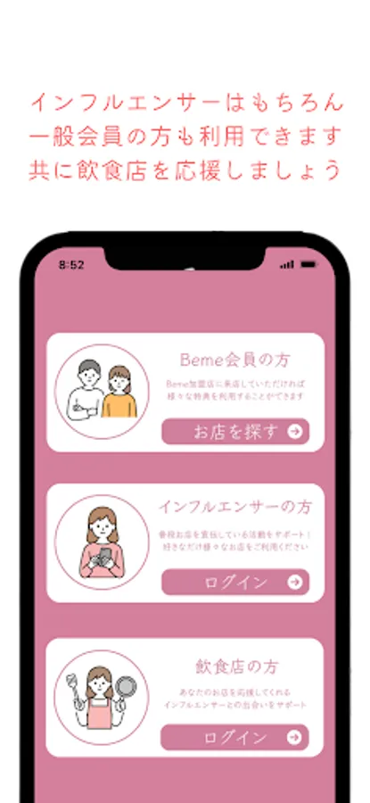 "Beme Matching - The best matching app that connects influencers and independent restaurants"