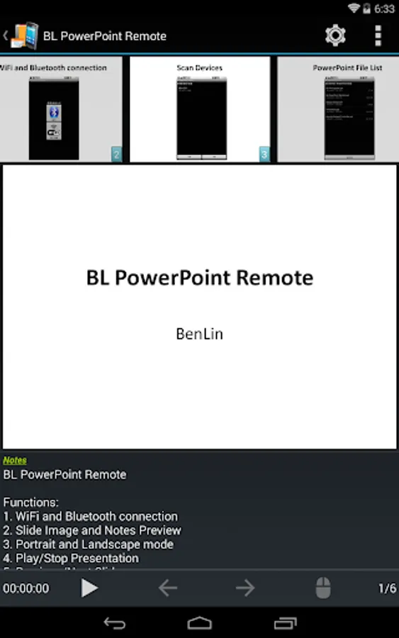 Via WiFi or Bluetooth connect to your PC/NB, BL PowerPoint Remote can control your PowerPoint presentations opened by Microsoft Office PowerPoint.