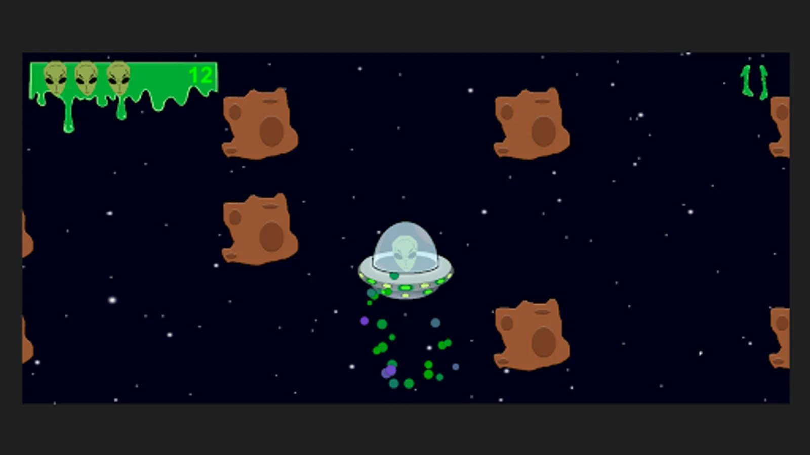 UFO 2D is a game in the "endless runner" genre, in which you are an alien trying to survive the meteor shower. How far can you go?