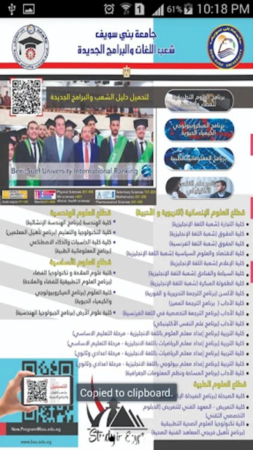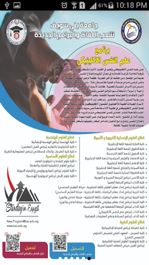 Beni Suef University seeks to design new special programs and language divisions in the various colleges to provide academic services that compete with the universally required majors and a large number of them come in cooperation with prestigious universities in developed countries, allowing the graduate to have a greater opportunity to find a suitable job immediately upon graduation.