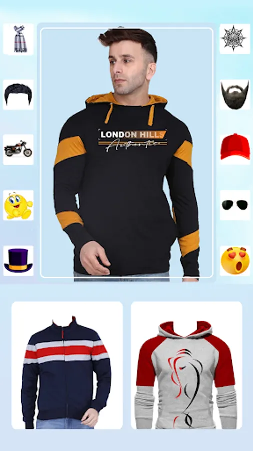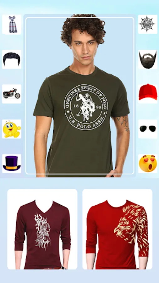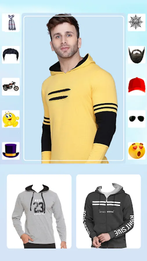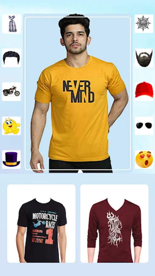 Men T-Shirt Photo Editor and Sweatshirt Dress has an amazing collection of Men T-Shirt, Men Designed T-Shirt and Men Sweatshirt collection and also backgrounds & stickers collection.