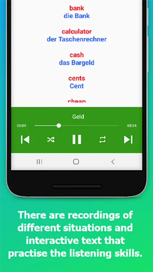 Of course, with integrated speech recognition, it helps to train and improve pronunciation. In addition, you can download vocabulary lists for A2 level or learn your own vocabulary according to the index card system.