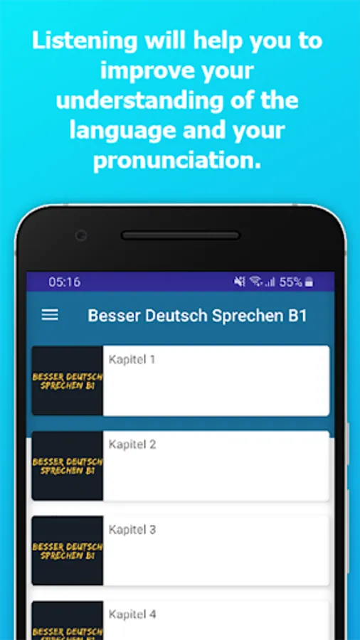 The app contains various and numerous news and topics that are corresponding to the language level B1. That's why you can refer more and more to your speaking skills.