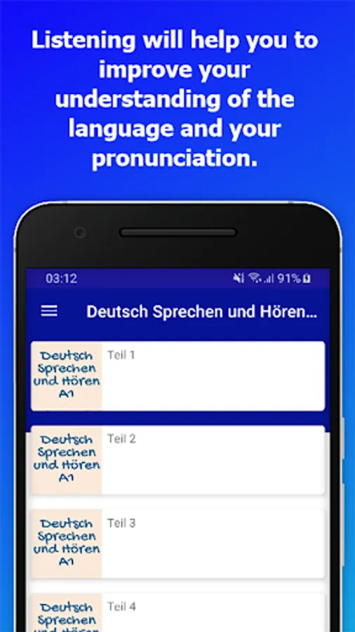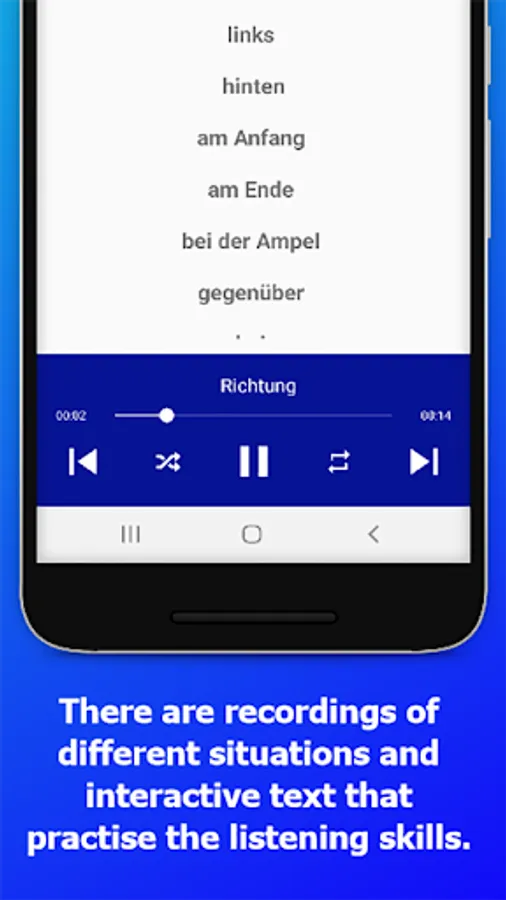 In addition, this app contains dialogues, make an appointment, planning something, talking about a topic, communication situations in German, oral exam example, the German courses for free etc. Here you can know how well you understand spoken German