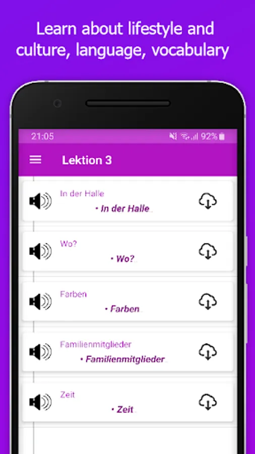 More than 30 lessons with 100 different dialogues, 1800 phrases, 1300 vocabulary. Do not miss our free program for you. But apps are also helpful as a supplement to the language course. German for work; Preparation for tests; Read hear; Online conversation; Interesting topics; Correction & Tips and The Exam TestDaF or the DSH you have to pass.