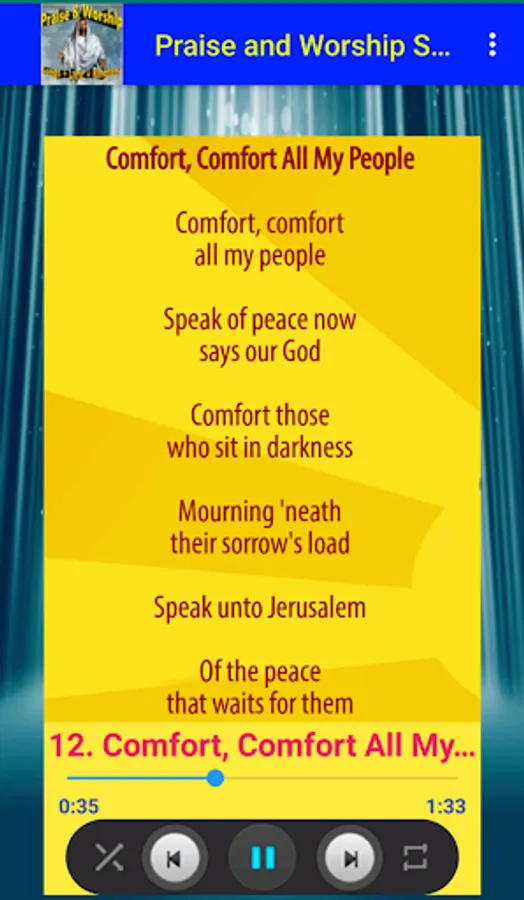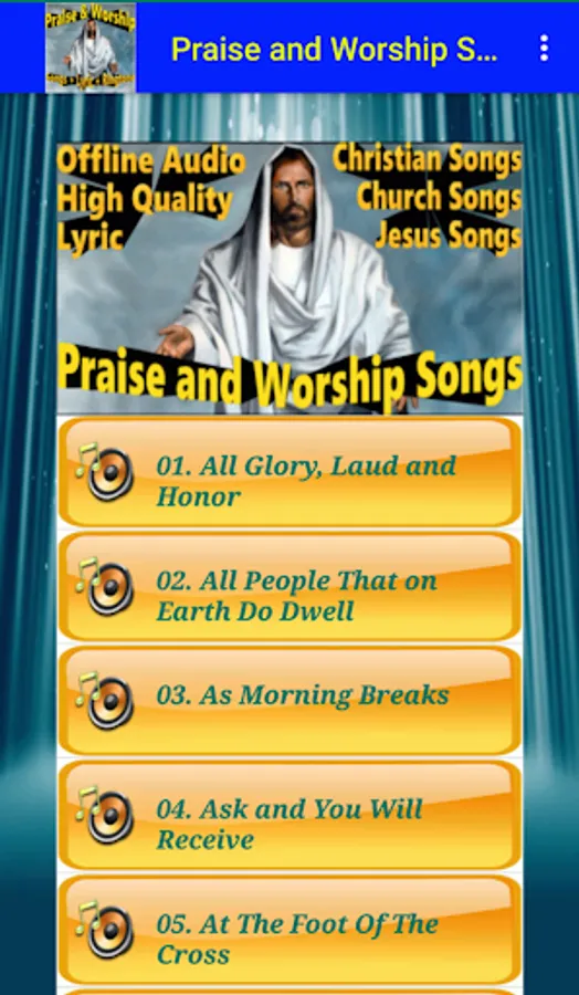 Enjoy the best collection of Jesus Songs for everyone. Included the most popular gospel songs such as King Of Glory, Lord I Need You, Comfort, Comfort All My People, All Glory, Laud and Honor, etc. Enjoy the best grace of free Christian songs for kids and adults. Enjoy the best experience of free Church songs. Install and enjoy the best of Praise and Worship for God anywhere and anytime - without any restriction.