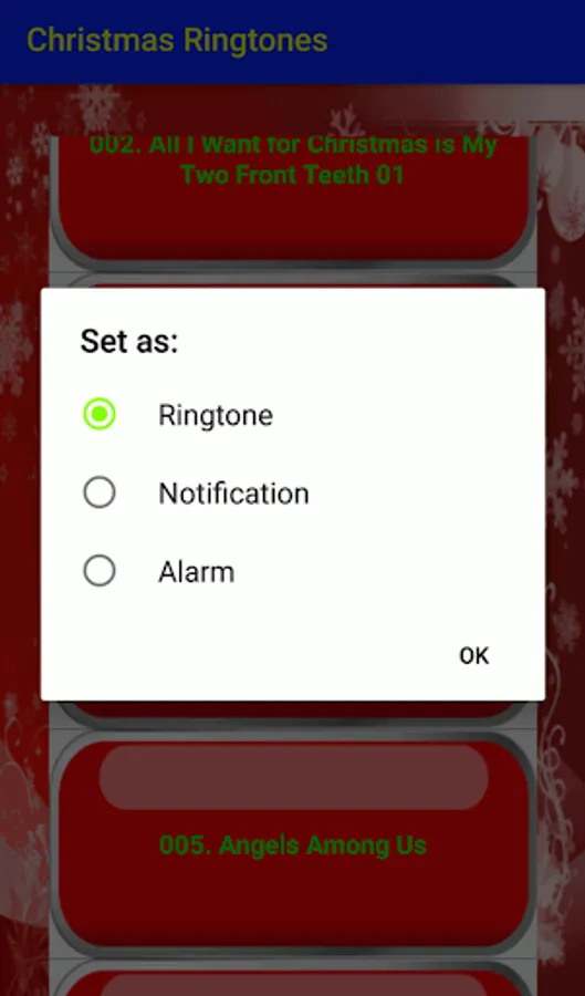 Ringtone function allows us to set the christmas music be our gadget's ringtone, notification, and alarm. It allows us to enjoy the Christmas fullest.