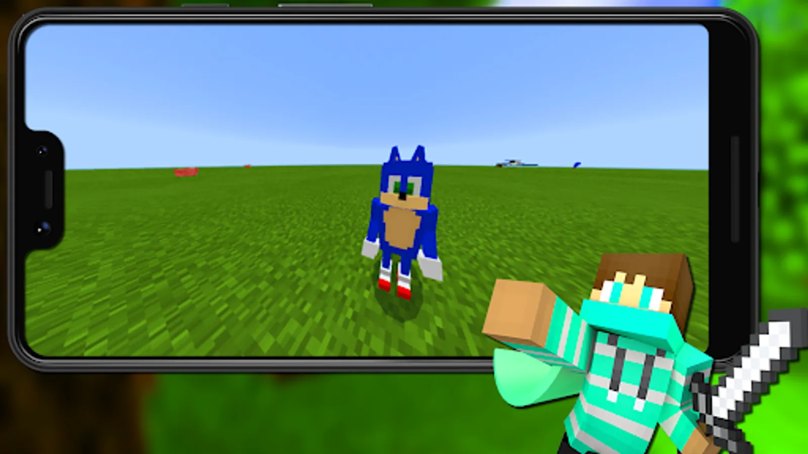 The application is not an official Minecraft Bedrock or Minecraft PE product, not approved or not associated with Mojang. Sonic is a fun character skin.