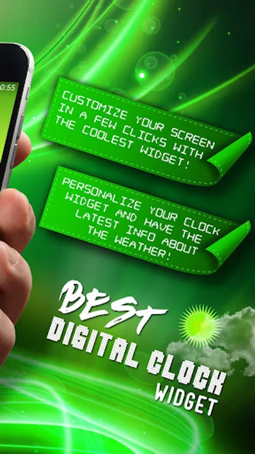 Discover the brand new đź’— Cool Digital Clock Widget đź’— and you can forget wearing a watch anymore! You will always know the exact date and time so you can stop worrying about being late to some important events. However, this is also a weather app widget that gives you the accurate weather forecast, so you never have to worry about wearing the wrong clothes. This fancy app allows you to make your own unique digital clock design by combining awesome themes and styles with your favorite color combination. Express your creativity and choose a clock face that is simple and clean or opt for a bold splash of colour for your mobile home screen. Choose your favorite alarm sounds to wake up in the morning and set the alarm using this fancy time widget. Download and install this digital app that is both quite useful and will personalize your phone!