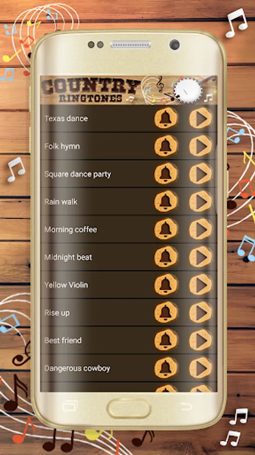 True devotees of country and folk music, best free country ringtones sounds for cell phone are here! Download the ♫Best Country Music Ringtones♫ free ringtone app and enjoy having unique free ringtones and alarm sounds! With one of the latest “free music ringtone apps” you will have fun listening to folk music tunes every day for free! The sounds of traditional country music instruments will make your morning coffee taste better and your evenings more romantic. Welcome to the real free country radio stations app with free music ringtones! You can set these “country ringtones” as alarm clock sounds or as notifications ringtones. Every call you get will put a smile on your face and brighten your whole day! The country music app's user-friendly design facilitates your usage of the “country app”. Waking up to your favorite “country songs” has never been easier!