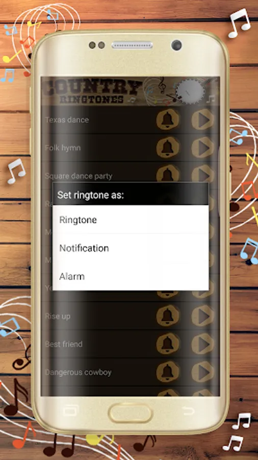 If you are a fan of country music, download the ♫Best Country Music Ringtones♫ and start your day in a good mood! Feel free to experiment with different free country ringtones. Explore the high-quality collection of country music sounds in the free ringtone download. Set free ringtone download as the alarm sound or message notification and enjoy folk ringtones daily! If you are a country girl or a cowboy, set up nothing but country hits on your smartphone and enjoy your favorite music genre! The country music downloader free has a perfect software that you can easily use to flip through the awesome ringtone songs. Traditional American folk music will help you get through the day with its warm country music beat. All you have to do is tap once to listen to the sound and hold to set it! Have fun with the best free ringtones inspired by country songs for true lovers of country music!