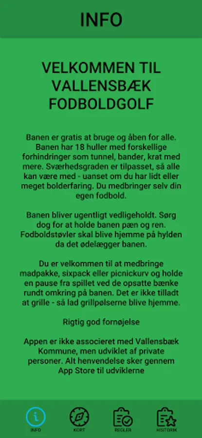 This app replaces the banknotes that can be found at the entrance to the Vallensbæk Football Golf Course.