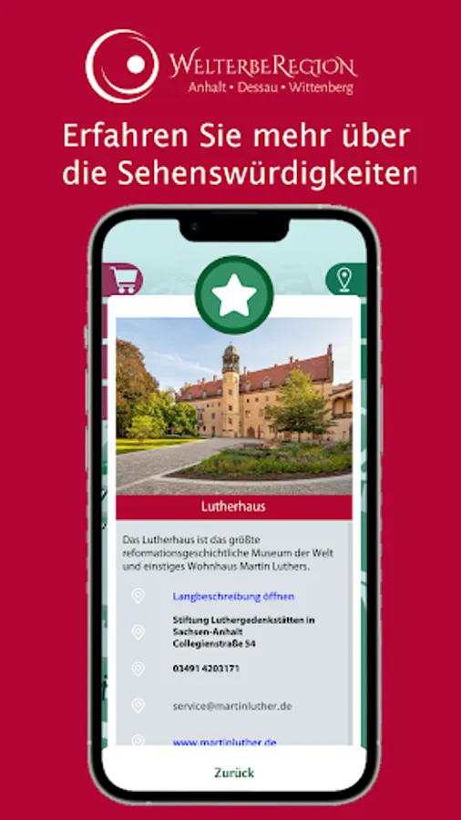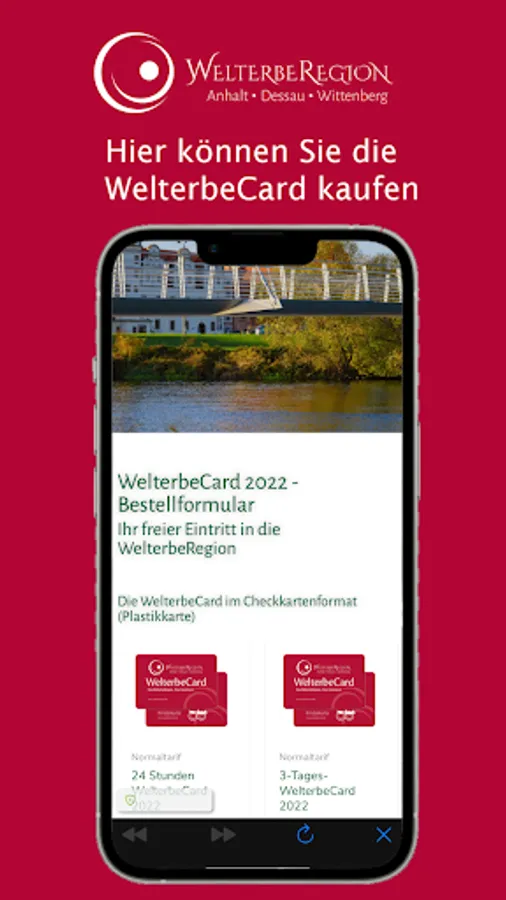 The unique region in the heart of Germany is particularly rich in history and world heritage and is embedded in impressive nature. Be amazed by the four UNESCO World Heritage Sites, the Luther Sites in Wittenberg, the Bauhaus Dessau, the Dessau-Wörlitz Garden Kingdom and the Middle Elbe Biosphere Reserve, all within a 35 km radius. But not only UNESCO is calling! The diverse world cultural heritage in Anhalt and the sites of industrial culture between Wittenberg and Bitterfeld are also worth seeing. The WelterbeApp gives you an overview of the important sights in the region and tells you where you can use your WelterbeCard – the region’s all-inclusive guest card.