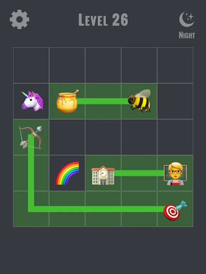Find matching emojis & connect them with each other. But make sure that, you can connect all of them to complete the level.