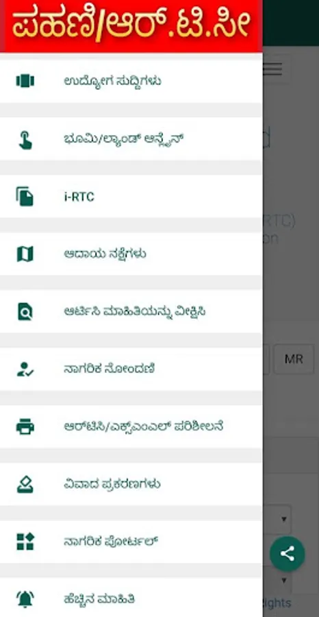 -----: ಕರ್ನಾಟಕ ಭೂಮಿ ಆರ್ಟಿಸಿ(RTC)/ಎಂಆರ್(MR) ರೆಕಾರ್ಡ್ಸ್ ಸೇವೆಗಳು :-----