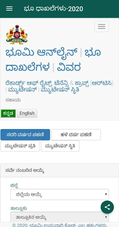 Note:Karnataka Bhoomi View app,Source of Information is from the Official websites of Bhoomi Karnataka State as Follow:https://landrecords.karnataka.gov.in/