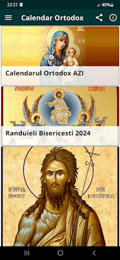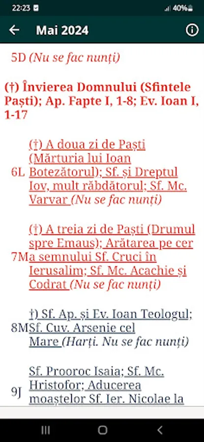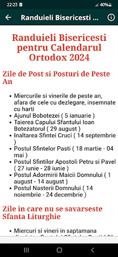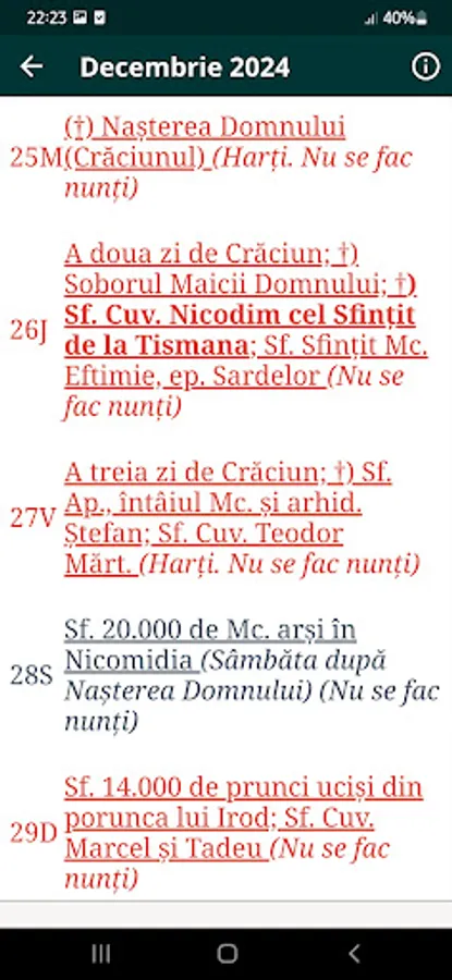 📌 The Orthodox Calendar 2024 application will keep you up-to-date, through notifications, about all Orthodox Christian holidays with a red cross (high holidays) with details about all the saints of that day. We wanted to make the application as simple and quick to access as possible for a pleasant user experience. For any suggestions or complaints, please contact us by email at biblechants@gmail.com. We read every review and take everyone's opinion into account.
