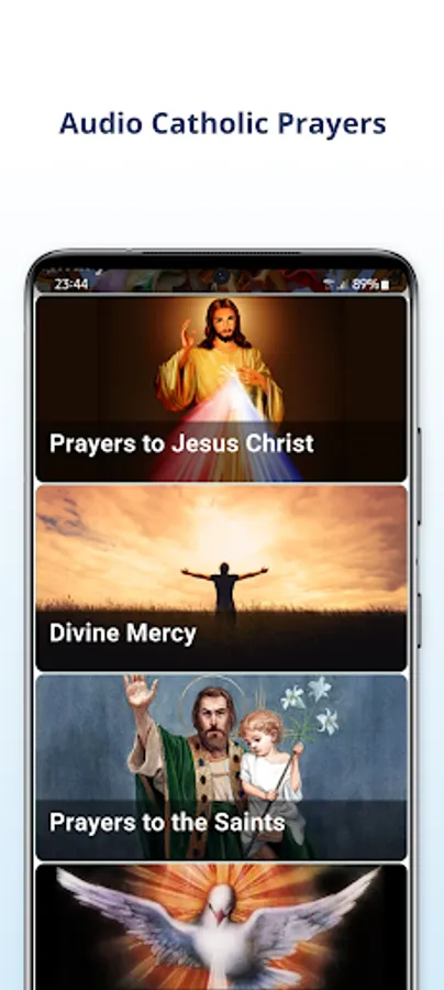 Starting with Catholic Missal 2023 we wanted to make this app more than a usual Catholic Prayers Audio app. We wanted to make it a catholic portal with everything a catholic need. For this we add Catholic Missal 2023, Holy Bible (Vatican Bible with Old Testament, New Testament and Psalms) and a Catholic Radio section.