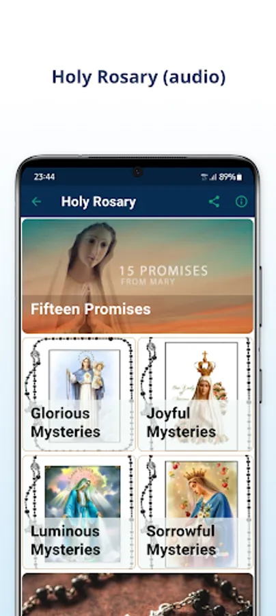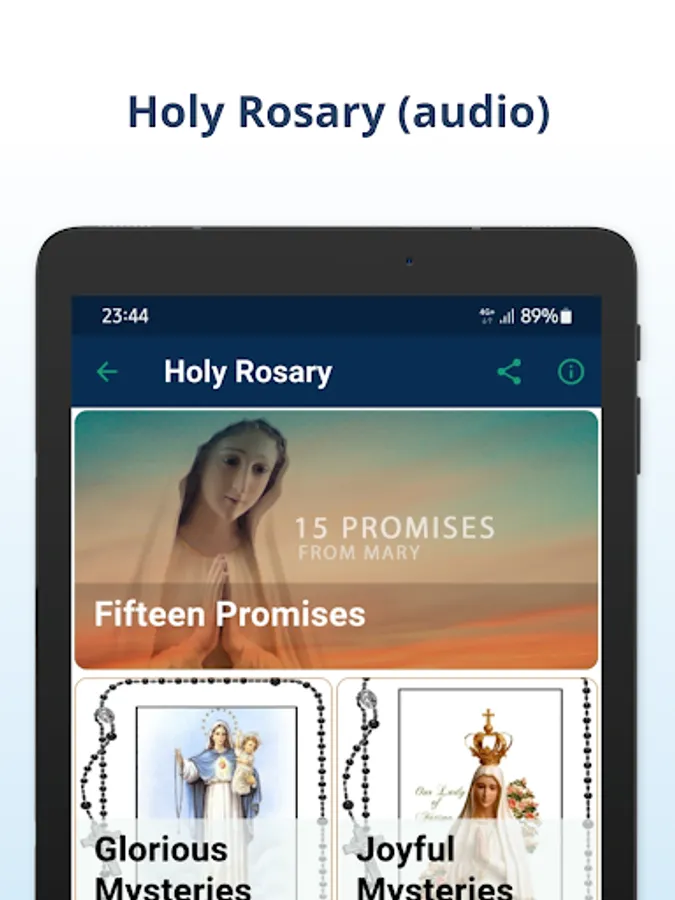 Now we will talk in detail about every section mentioning the most important prayers. We must say first that most of the catholic prayers are in audio format and need internet connection because the app will be huge if we put all inside.