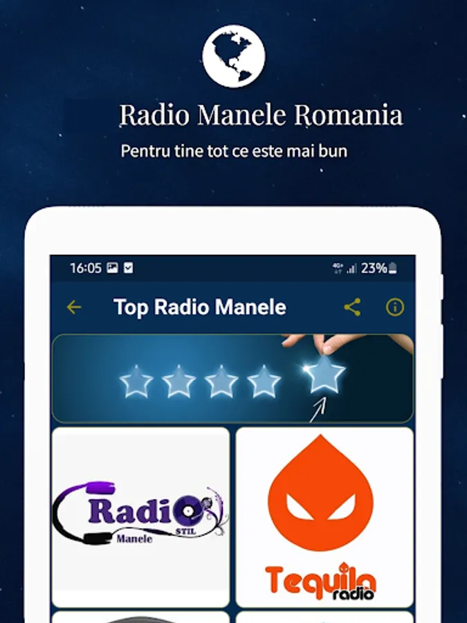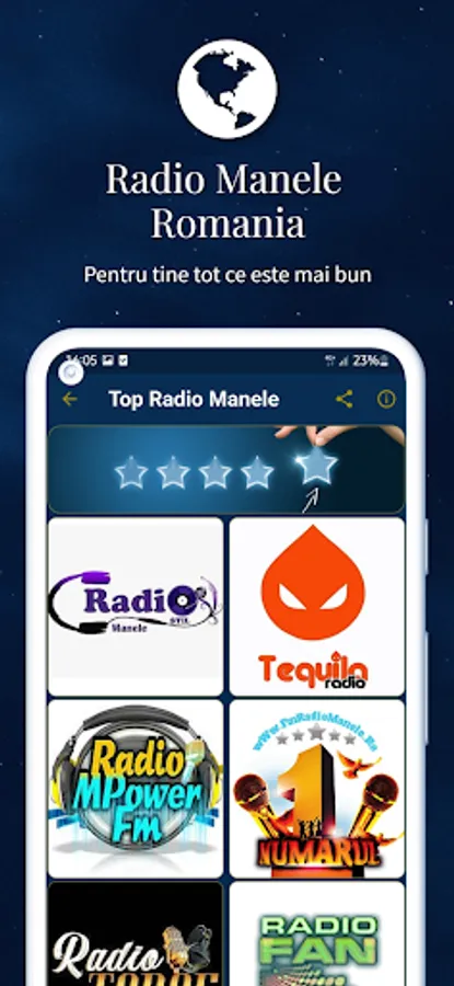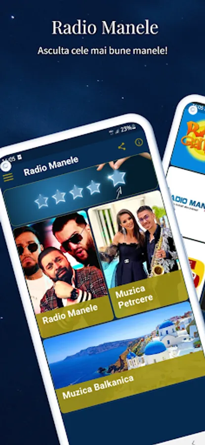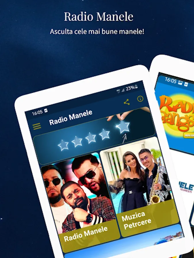 Radio Manele 2023 application offers you the largest and highest quality collection of radio stations with new manele 2022 which will be in the top in 2023. Manele with Nicolae Guta, Dani Mocanu, Tzanca Uraganul, Florin Salam, Adrian Copilu Miracle and many others.