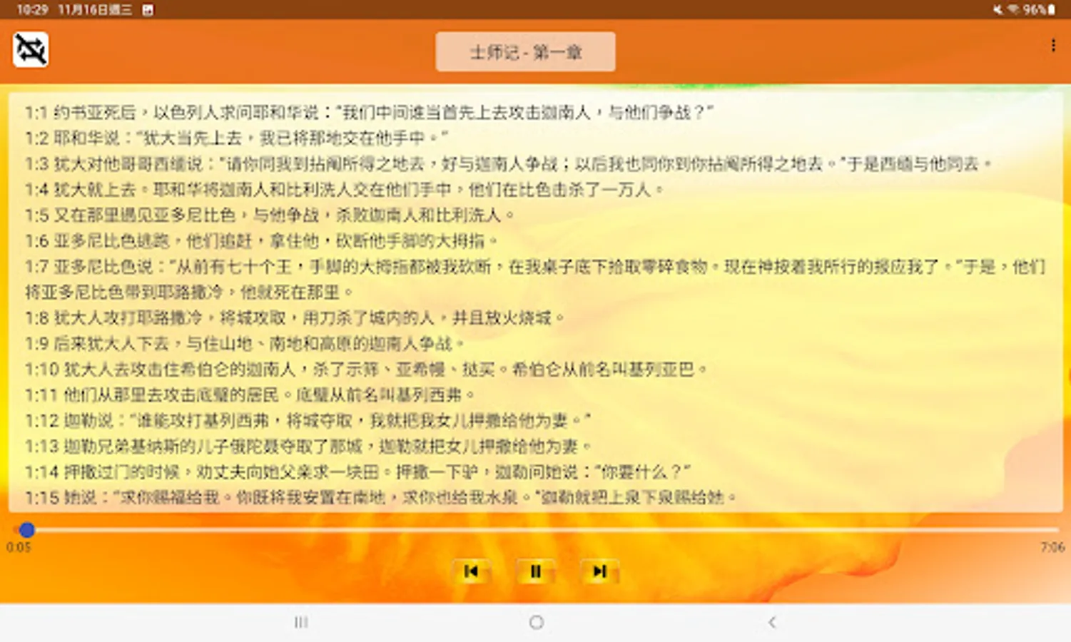 Demonrated by the senior broadcast voice actor and Zhang Mianyang, president of the Hong Kong Mandarin Chinese Recitation Art Research Association, the voice is thick, round, clear, and full of emotions, making the feelings of the mythology very shocking: original background music, bringing out the entire Old and New Testament The artistic conception of the whole book brings you into the world of the Bible as if you were present at the scene.