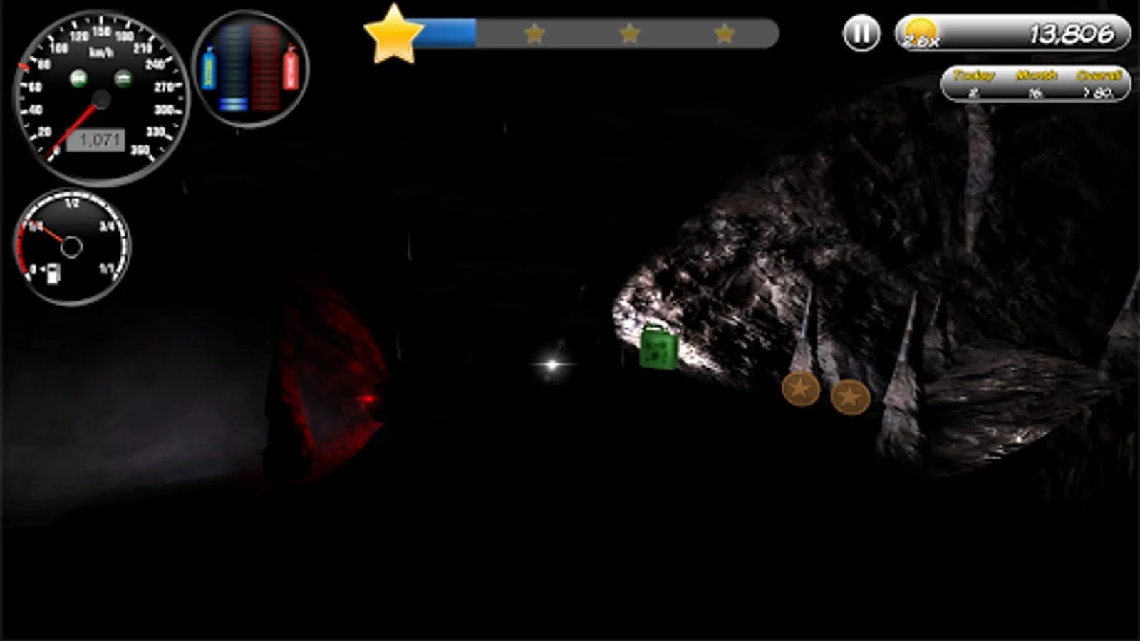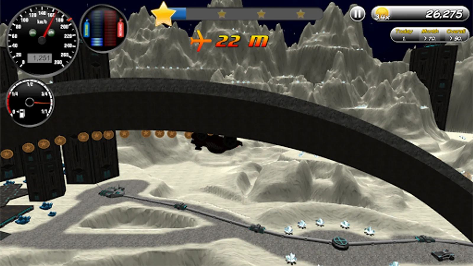 Activate nitro boost for highest speed and use methane explosions for spectacular jumps!