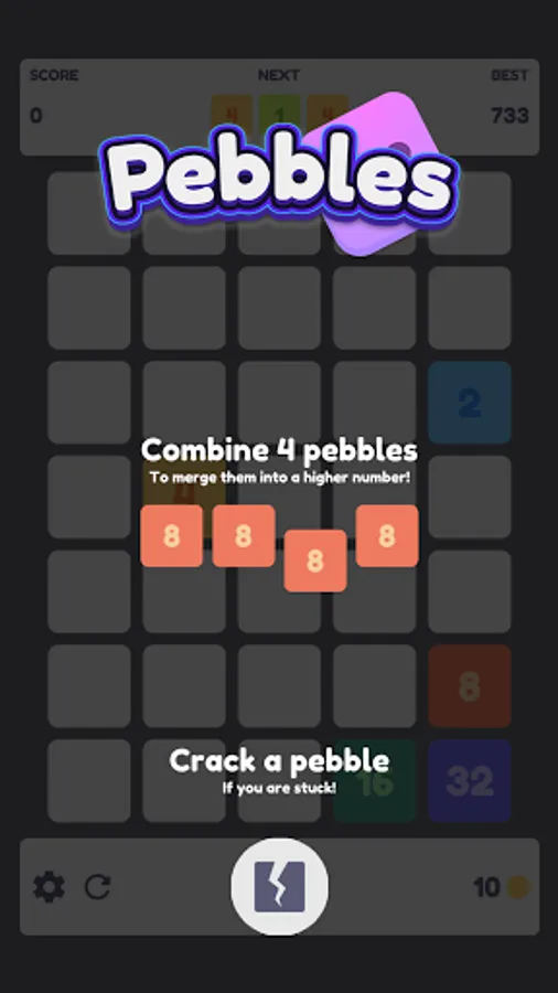 Plan your moves and crack Pebbles that are in your way to reach the highest possible score. But don't worry, if the Pebbles have taken over you can simply try again.