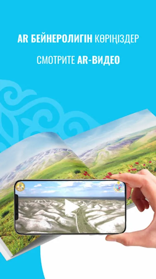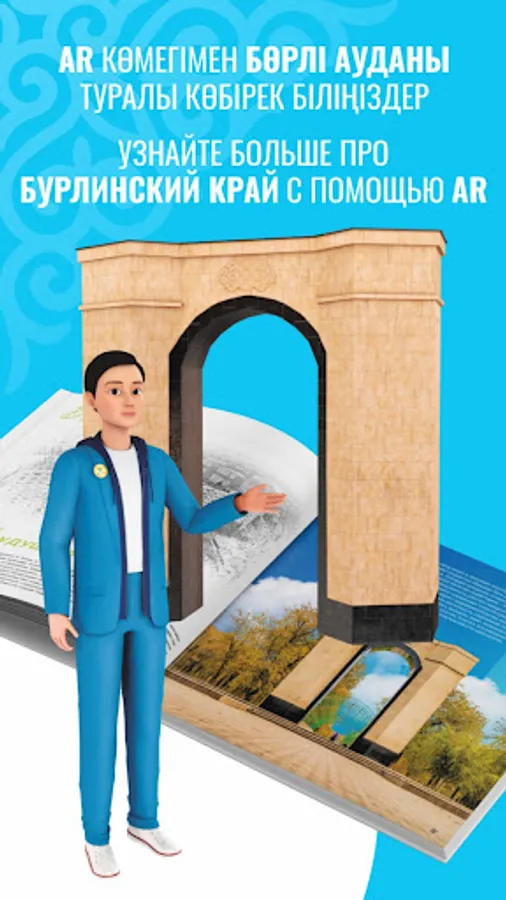 Download the free Aksay mobile application and point your phone or tablet camera at the 3D icon on the pages of the book "Borli - Kazynaly Meken" to take an educational tour.