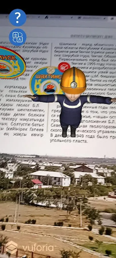 The mobile app with Augmented reality technology allows watching the video and 3D animation in the “Shakhtinsk is my favorite city” book. To watch the video download the mobile app and point the camera at the entire page of the book with the 3D icon. You will see a videо that you can watch while reading.