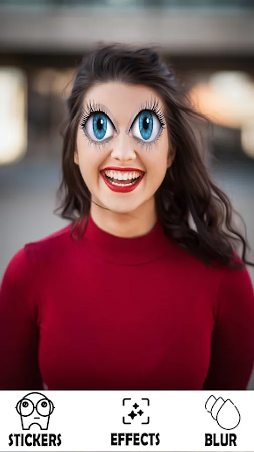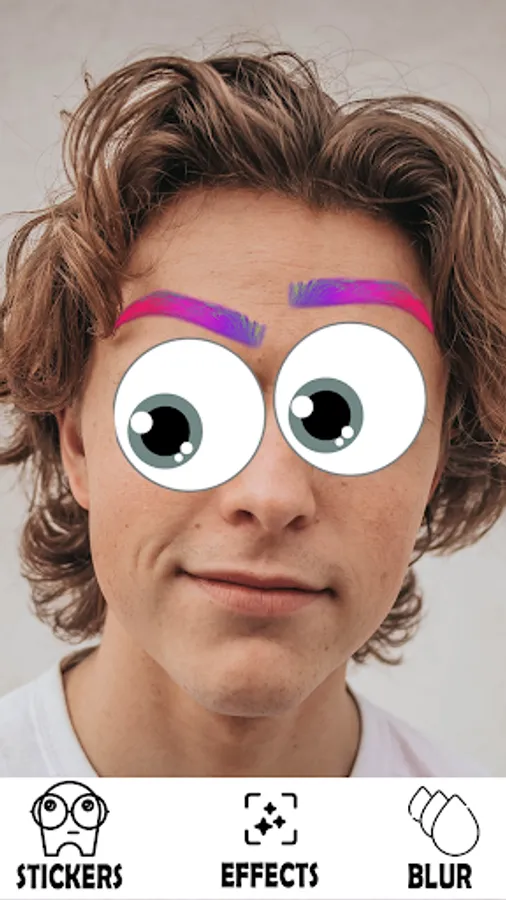 Start your photo editing adventure and install one of the best funny photo apps. Open the big eyes app, upload a photo from your gallery or take a selfie and add crazy eyes! Use your fingers to resize stickers and make your eyes bigger.