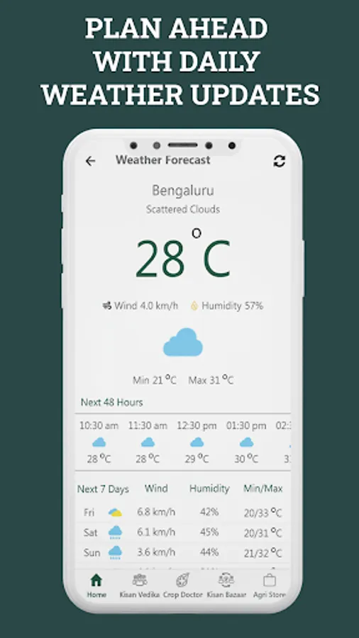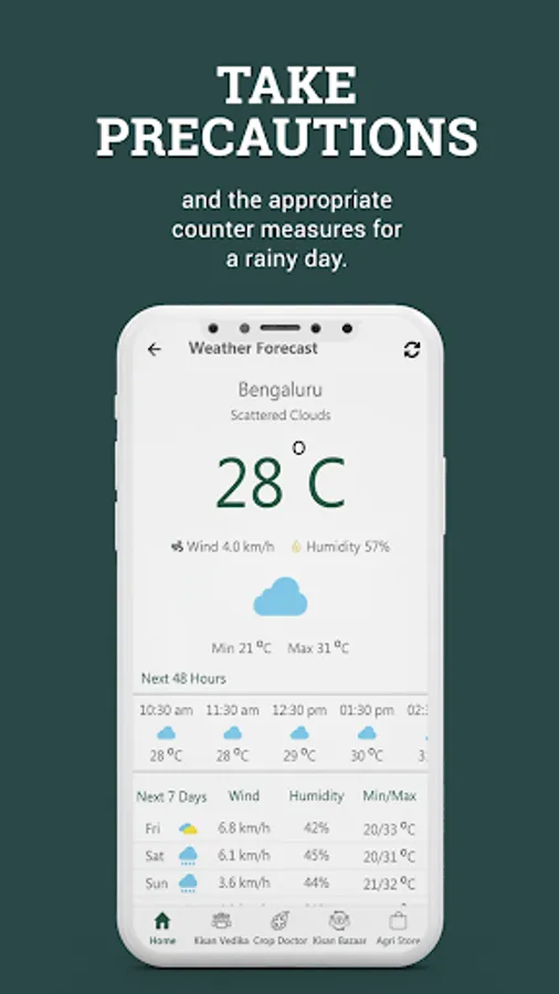 ➥ Personalized weather forecasting, know the weather as per your crop selection, and schedule your agricultural activities(sowing, weeding, spraying & harvesting) according to the weather.