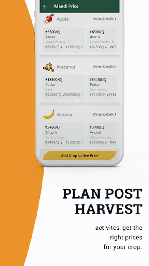 ➥ Farmers can choose their crops and get personalized advice from sowing to harvesting. It covers the complete details of more than 70+ crops with farming package of practices, crop guides, and pest & disease guides, giving farmers complete knowledge about their crops and the problems associated with them, and all of this is in vernacular languages.