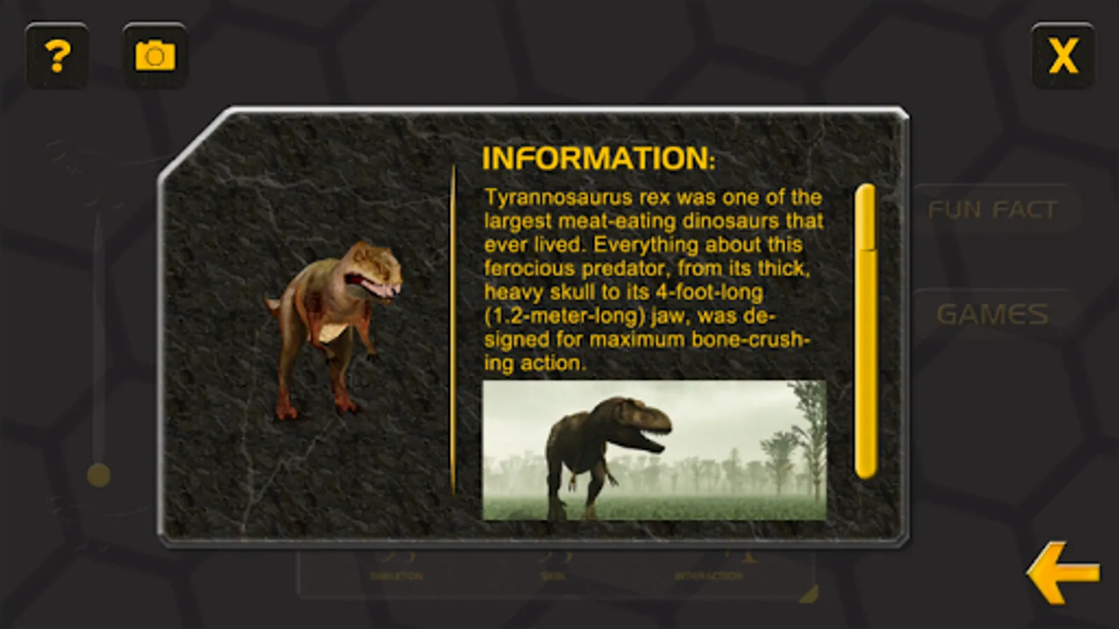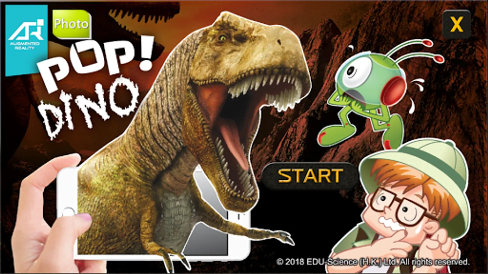 Pop! Dino is an augmented reality (AR) App. Scan the recovered dinosaur bones on the map to display the 3D models with or without the skin. You may find interesting facts, zoom, take a selfie with the dino and even share it with your buddies.
