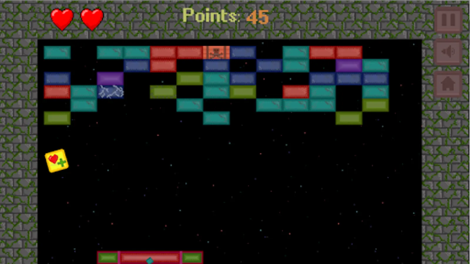 How many similar clones of arkanoid divorced each other, right? So I decided to make my own. But now there is only one level and your task is to hold out on it for as long as possible. In addition, the game has a variety of bonuses that will be added to the game with each update. And the graphics here are stylized as pixel art - no frills. Write suggestions, criticism and suggestions in reviews, I will be glad to answer everyone.