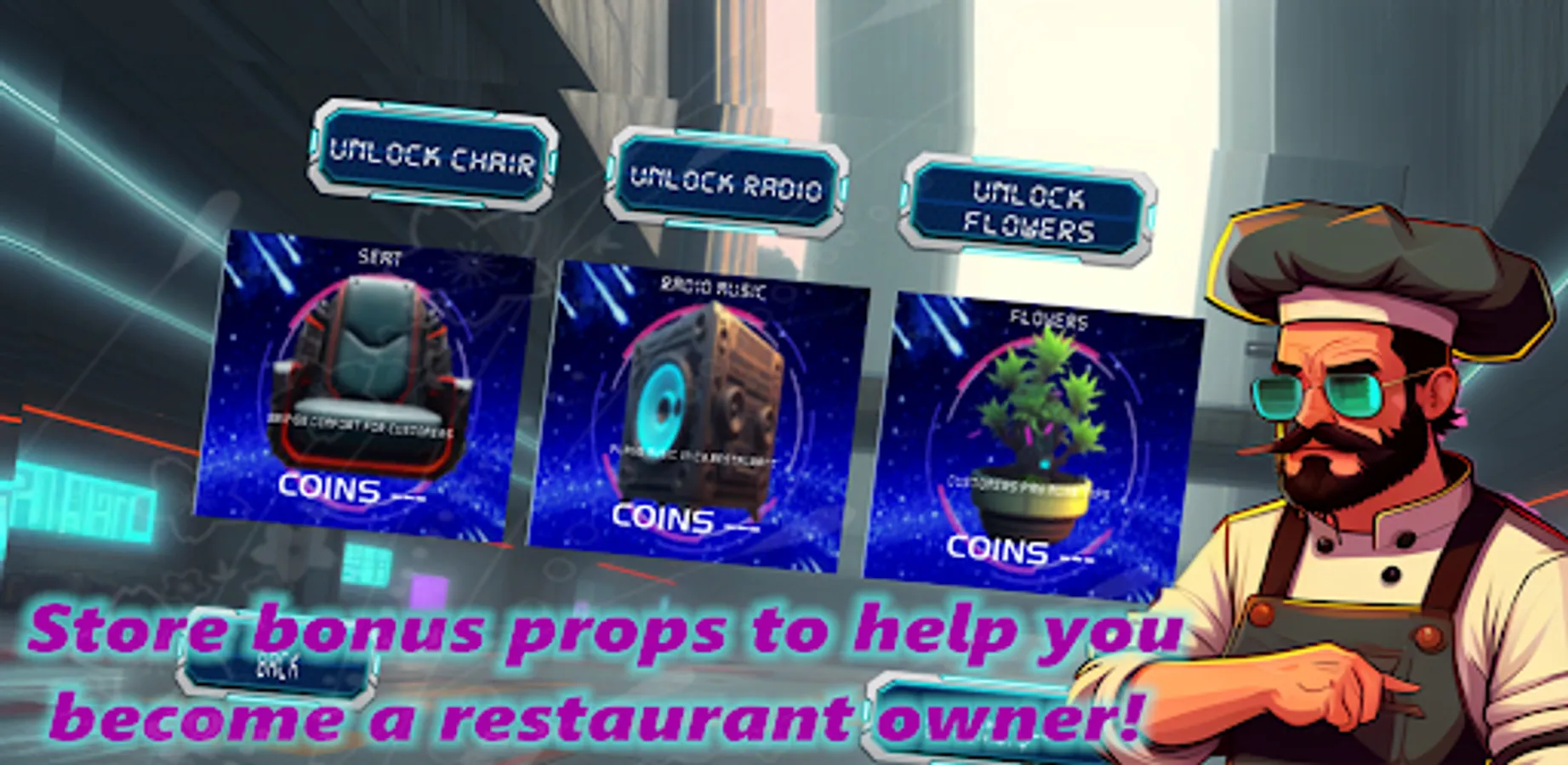 Welcome to the Cy-burger restaurant! From now on, you will be the owner of a cyber gourmet restaurant in this cyberpunk street! Brand new and popular fast cooking game, it is worth downloading for the cool chiefs!