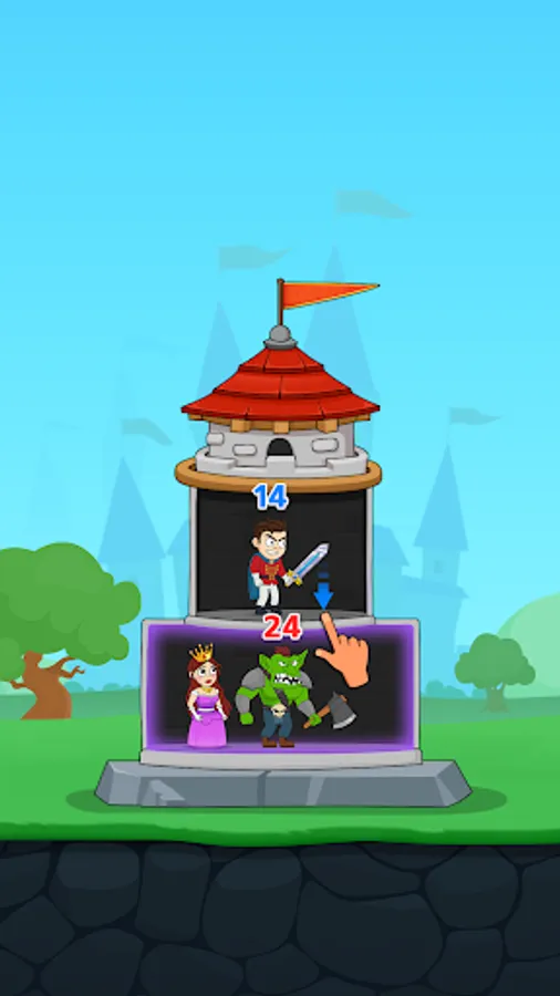 - Drag & Move your hero wisely to power up, collect the loot, destroy enemies and save your princess.