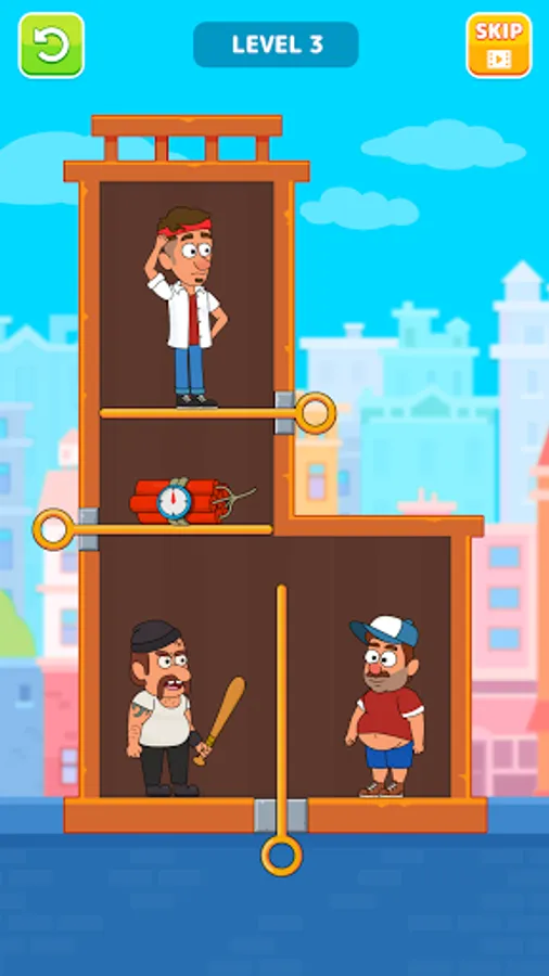 There are different types of challenges like lava, wild animals, villains, etc., To save the buddy you should have to take a right decision to pull pin and clear the level.