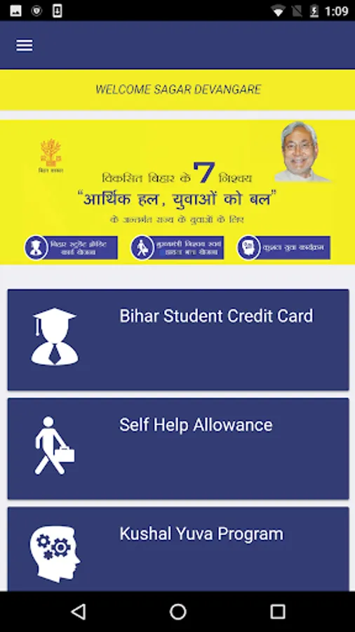 Yuva Nischay mobile app has been developed to get the benefit of the schemes (BSCC, SHA, KYP) for student’s welfare under one of the commitment ‘Arthik Hal, Yuvaon Ko Bal’ aimed to improve the financial condition of youth of Bihar. The youth of Bihar can get benefited as per scheme guidelines.